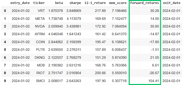 Each month, we pull the available universe and use historical data to calculate the momentum score for each stock.