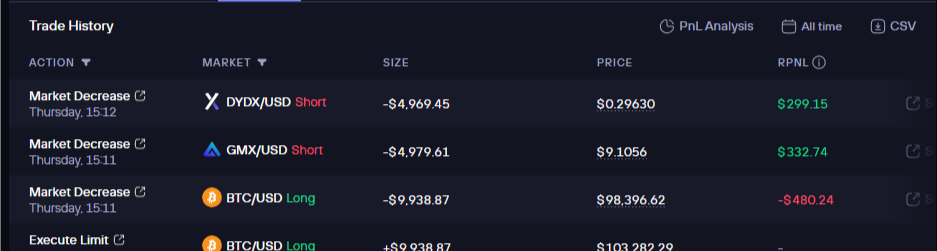 We first opened up a test trade on GMX, one of the more established DEXs (decentralized exchanges):