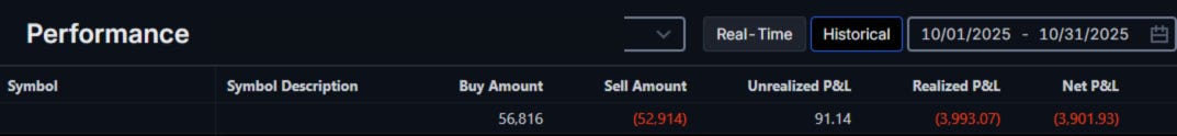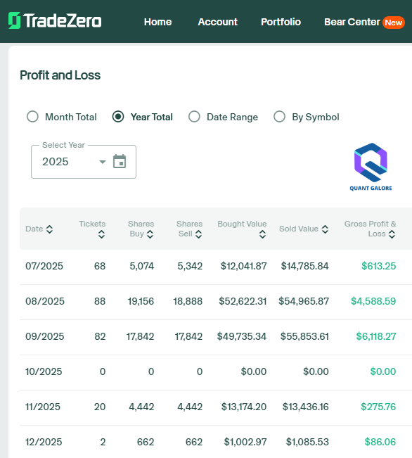 As the PnL snapshot from Interactive Brokers shows, the strategy experienced periods of both extreme euphoria and sharp drawdowns this year, particularly during the unwind of the AI and quantum-computing trade: