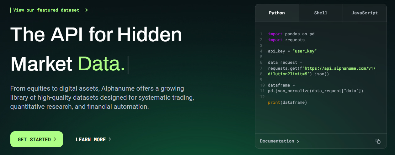 Alphanume isn’t about selling predictions or packaging signals. It’s simply the place where we make the same underlying datasets we use for real trading decisions available to anyone who wants to explore them.